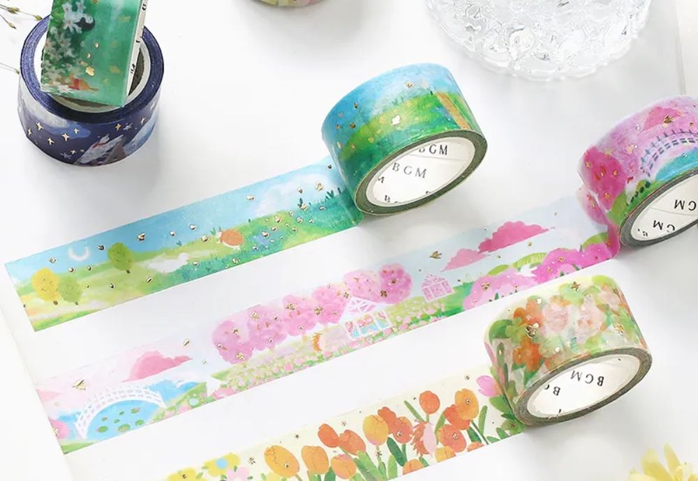 Marka BGM to japońska firma specjalizująca się w produkcji wysokiej jakości artykułów papierniczych, takich jak taśmy washi tape, naklejki, stemple, papiery listowe i akcesoria do journalingu. Produkty BGM są cenione za swoje unikalne wzornictwo, precyzyjne wykonanie oraz różnorodność stylów - od minimalistycznych po bardziej dekoracyjne. Często odnosi się do marzycielskich krajobrazów i magicznych scenerii.