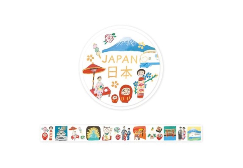 Stylowa taśma dekoracyjna typu masking tape ozdobiona motywem Japan - ogólne motywy kojarzone z Japonią (np. symbole kultury japońskiej). Delikatne złote tłoczenia (foil) nadają wzorowi elegancki i subtelnie błyszczący efekt, dzięki czemu taśma świetnie sprawdzi się w projektach kreatywnych oraz dekoracyjnych.