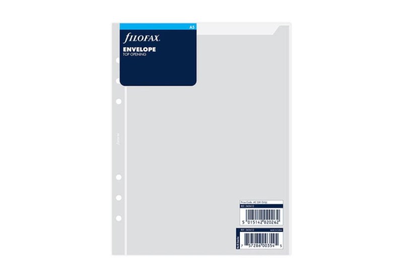 Przechowuj luźne dokumenty, zdjęcia lub akcesoria w tej przezroczystej kopercie otwieranej od góry. Idealna do dodatkowego przechowywania w organizerze Filofax A5.