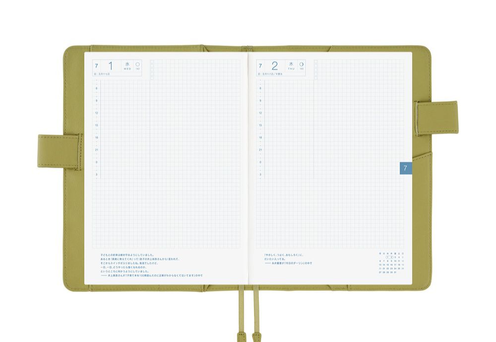 Jak to działa? Kalendarze Hobonichi sprzedawane są bez dodatkowej okładki, co daje możliwość pełnej personalizacji. Do wyboru są różnorodne etui A5 - od minimalistycznych, materiałowych po kolorowe i artystyczne, często powstające we współpracy z projektantami i ilustratorami. Okładka chroni kalendarz i dodaje mu charakteru, a dodatkowe kieszonki i uchwyty na długopis czynią go jeszcze bardziej praktycznym. Dzięki temu każdy egzemplarz Hobonichi może stać się niepowtarzalnym przedmiotem dopasowanym do Twojego stylu.