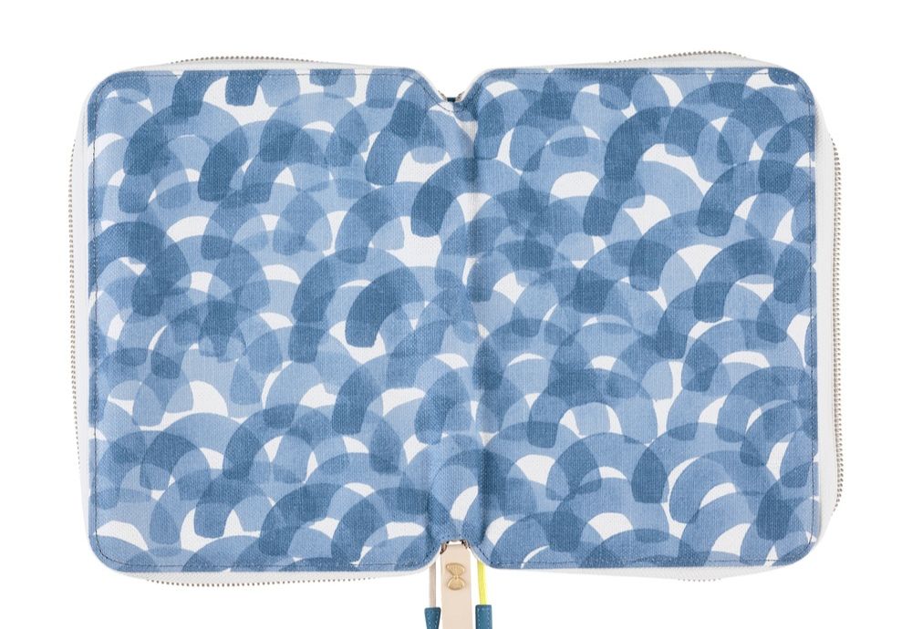 Zaprojektowana, aby wyobrazić sobie szerokie i otwarte morze z falami w oddali. Okładka wykonana jest z wyjątkowej tkaniny stworzonej przez japońską markę minä perhonen, znaną z niezwykle precyzyjnego, artystycznego podejścia do wzornictwa i rzemiosła. Materiał zachwyca zarówno wizualnie, jak i dotykowo – to prawdziwe doświadczenie dla zmysłów.