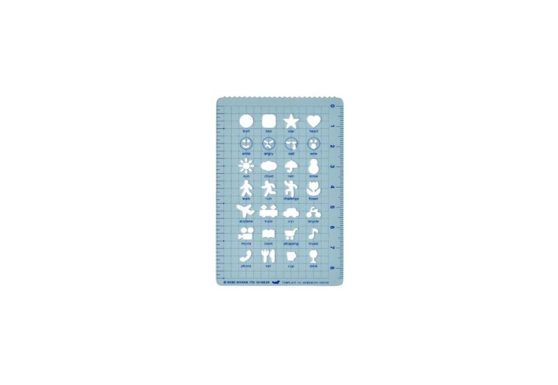To mini szablon, który pozwoli narysować różne ikony i symbole. Umożliwia rysowanie symboli, takich jak: pogoda, pojazdy (samolot, auto, rower), jedzenie, emotki, aktywności (chodzenie, bieganie) itp. Zawiera również 8 centymetrową linijkę.