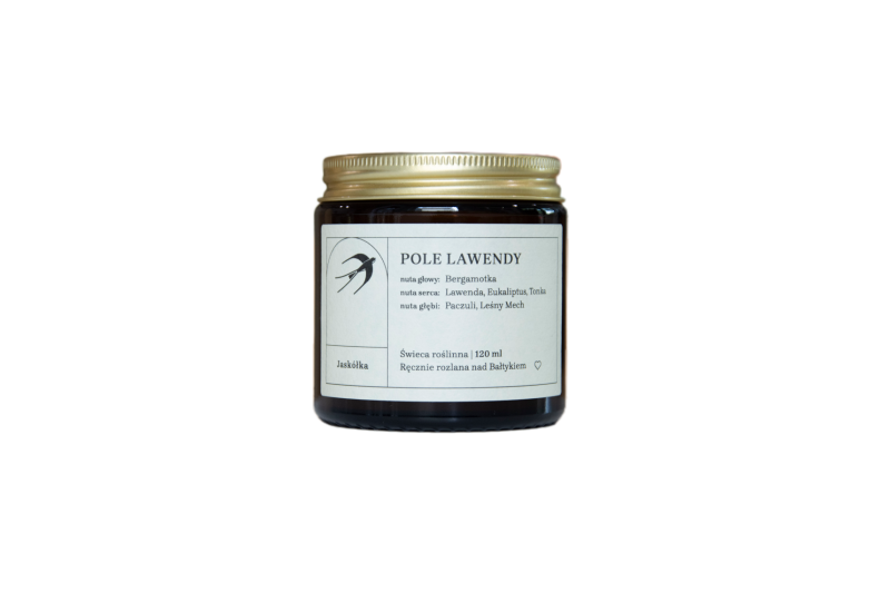 Świeca sojowa od Jaskółki o zapachu "Pole Lawendy" przeniesie Cię na bezkresną uprawę fioletowych krzewinek lawendowych skąpanych w zachodzącym słońcu Prowansji. To kwiatowy zapach, w którym wyczuwalne są nuty, takie jak:
