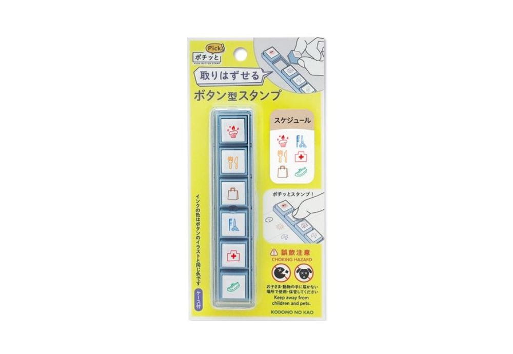 Zestaw mini stempelków na przycisk od japońskiej marki KODOMO NO KAO, które w uroczy sposób ozdobią Wasze notesy.