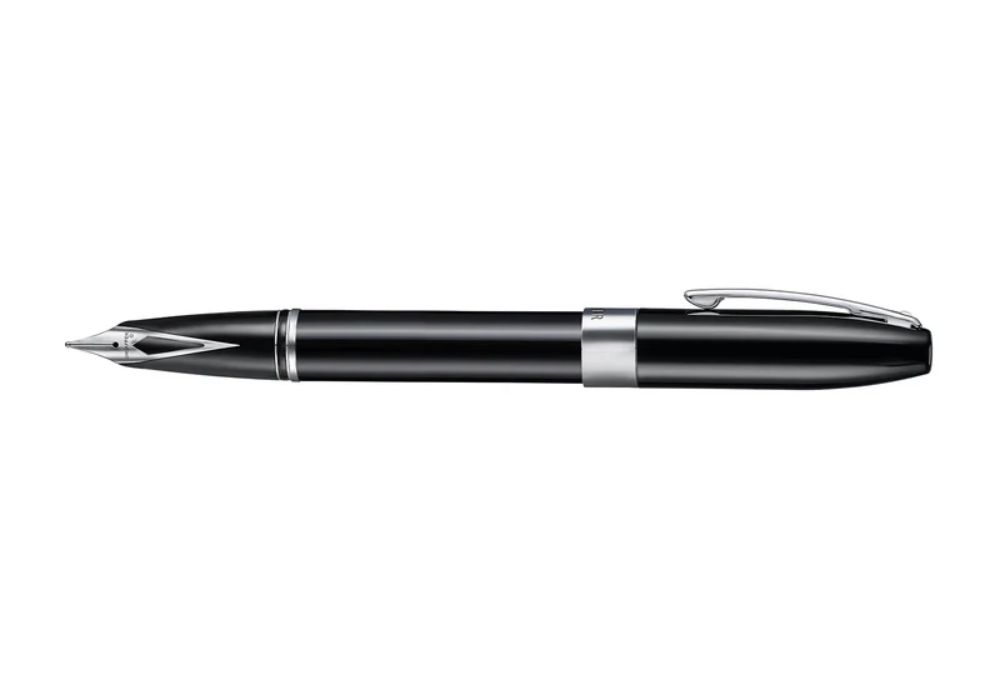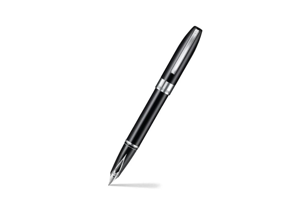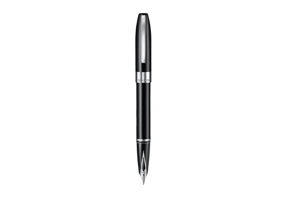 Pióro jest wykonane z metalowego korpusu lakierowanego na czarno, z chromowanymi detalami i stalową stalówką. Dzięki dopracowanej konstrukcji i charakterystycznej stalówce, pióro zapewnia płynne prowadzenie po papierze oraz równomierny przepływ atramentu. To doskonały wybór zarówno dla kolekcjonerów, jak i osób ceniących wysoką kulturę pisania.