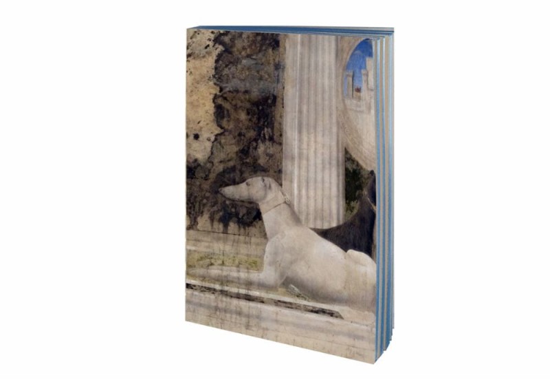 Notatnik z płócienną okładką i artystycznym duchem, czerpiące detale z renesansowego malarstwa. Notes z kolekcji Canvas Book przedstawia okładkę, na której widoczny jest pies. Brzegi malowane są ręcznie na kolor niebieski.